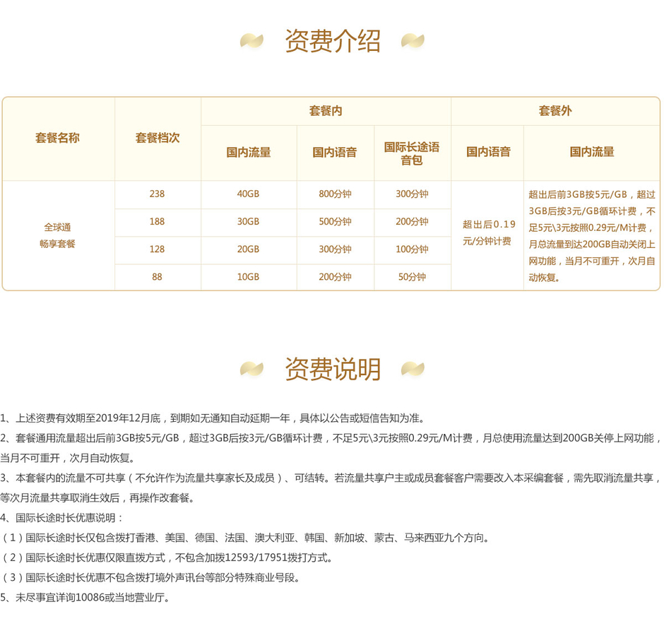 全球通等級說明:辦理全球通套餐資費后,系統會自動在每年1月15日根據過去一年的消費和在網網齡綜合判斷全球通等級,如果消費和網齡符合標準,即可成為對應等級的全球通用戶