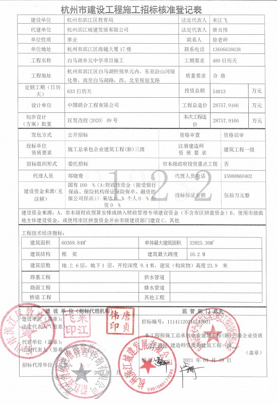 白馬湖單元中學(xué)項(xiàng)目招標(biāo)核準(zhǔn)登記表
