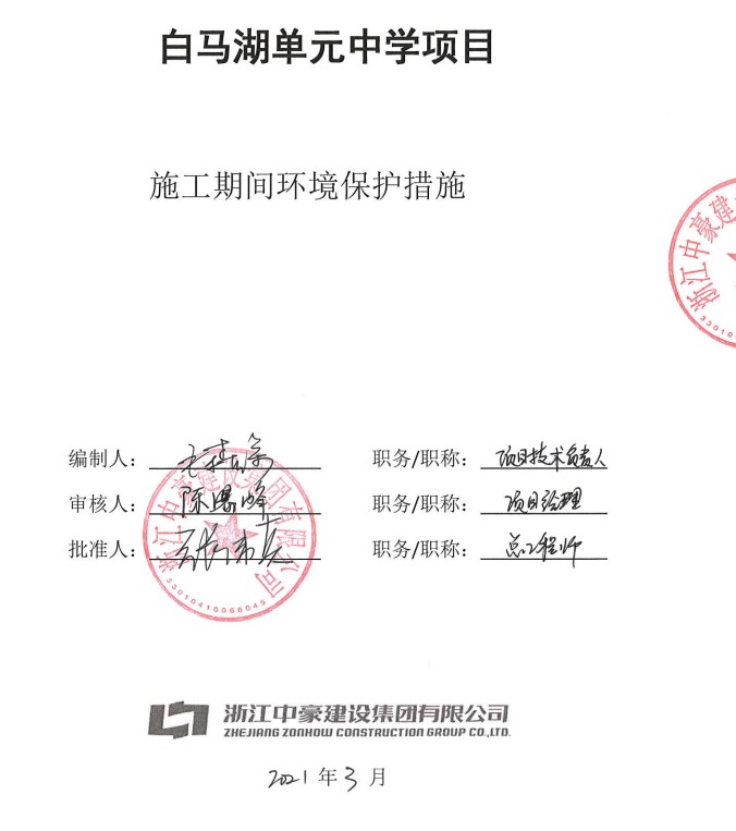 白馬湖單元中學(xué)項(xiàng)目施工期間環(huán)境保護(hù)措施