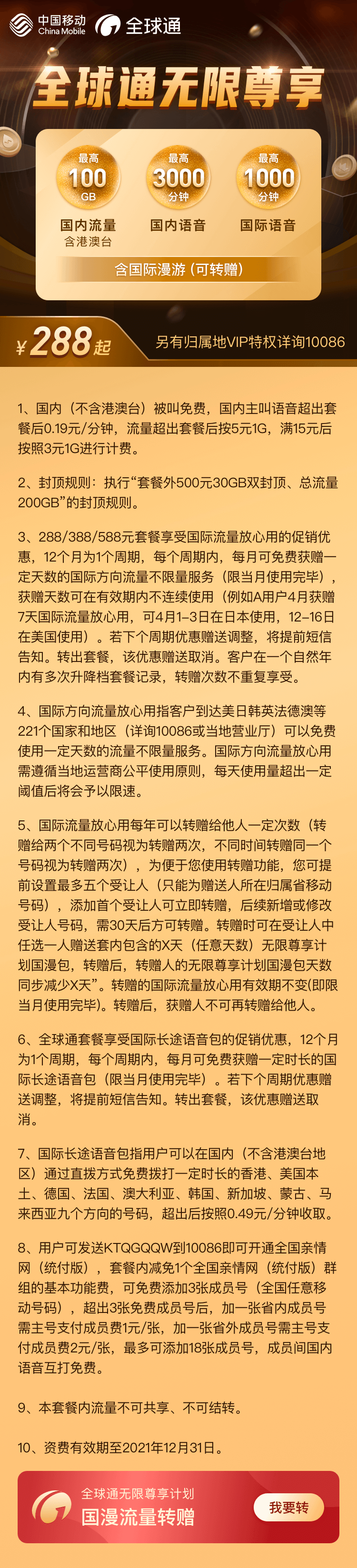 全球通無限尊享計劃套餐