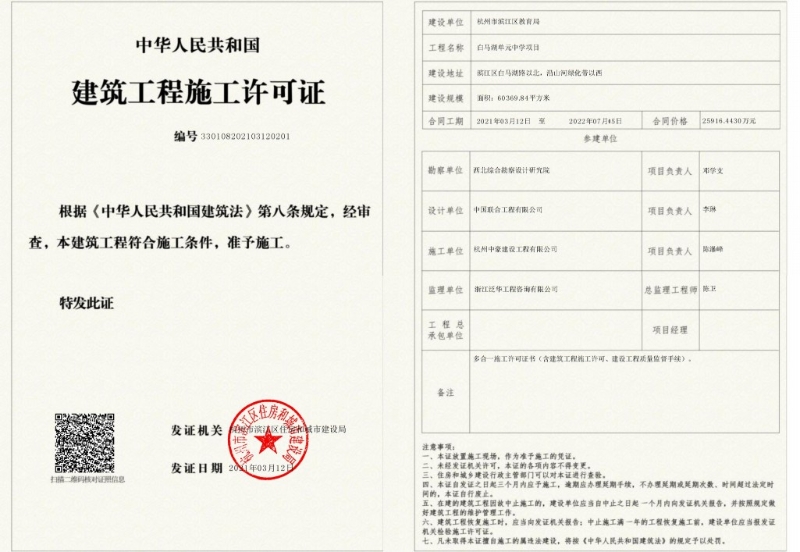 白馬湖單元中學項目施工許可證
