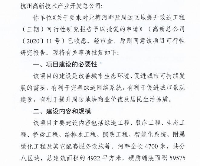 北塘河項目三期可研報告的批復