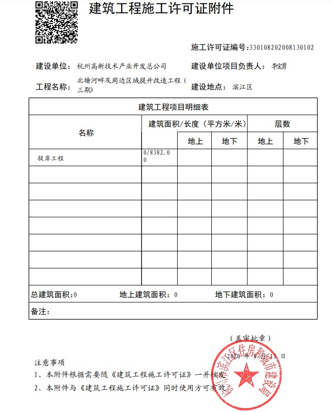 北塘河項目更換后的施工許可證