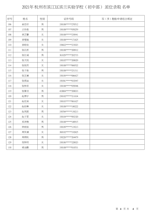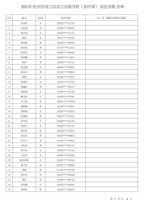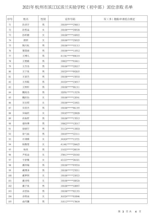 杭州市濱江區濱蘭實驗學校錄取名單