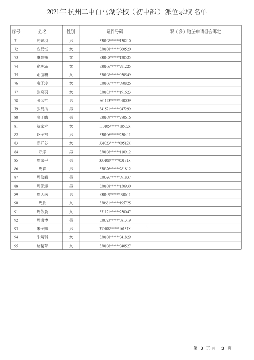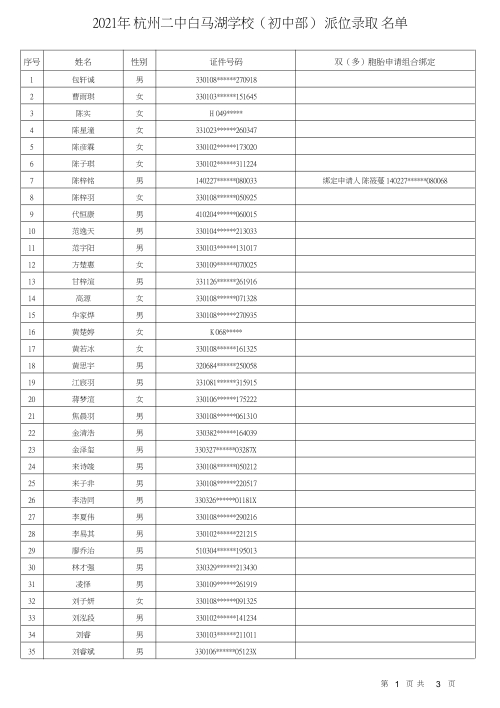 杭州二中白馬湖學校錄取名單