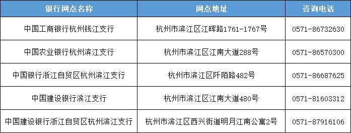 浙江省本外幣合一銀行結算賬戶試點銀行 高新區(濱江)網點列表