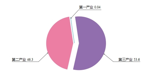 2020年,高新區(濱江)實現生產總值1745.7億元,按可比價格計算,同比增加7.2%,增幅分別高于全國、全省、全市4.9、3.6、3.3個百分點。分產業看,第一產業增加值0.64億元,下降8.7%;第二產業增加值809.0億元,增長9.6%,其中工業增加值794.2億元,增長9.7%;第三產業增加值936.1億元,增長5.0%。二、三產業協同發展,雙輪驅動,比例為46.3:53.6,產業結構更趨合理。