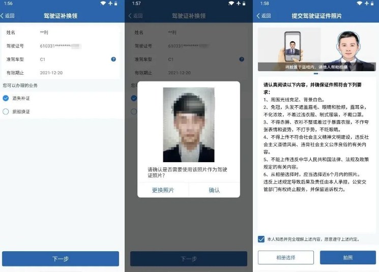 選擇您所需要辦理的業(yè)務(wù)類(lèi)型,點(diǎn)擊【下一步】,對(duì)于存在有效駕駛證照片的,確認(rèn)是否繼續(xù)辦理或更換照片;對(duì)于不存在有效駕駛證照片或更換照片的,可按照系統(tǒng)提示引導(dǎo),在線提交駕駛證證件照片后繼續(xù)辦理。