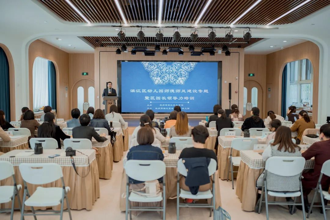 為提高濱江區(qū)幼兒園教師隊伍建設,提升團隊制度建設,以及家園溝通的能力,濱江區(qū)幼兒園師德師風建設專題會議暨區(qū)園長管理領導力培訓在曉風印月幼兒園舉行。