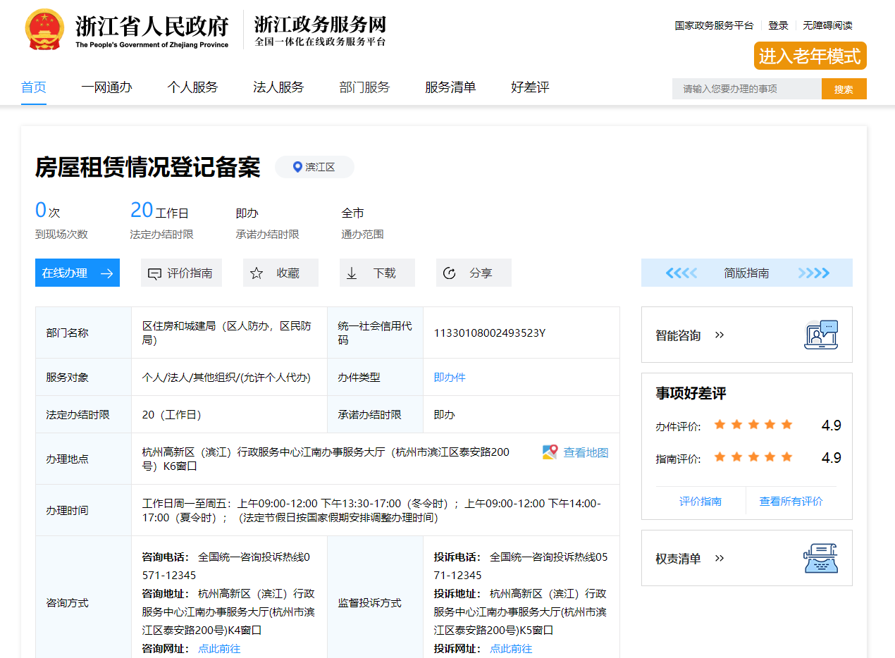 1.浙江政務服務網-房屋租賃情況登記備案(https://www.zjzwfw.gov.cn/zjservice/item/detail/index.do?localInnerCode=726bec41-1f36-40a4-aed0-318e7760ede5)