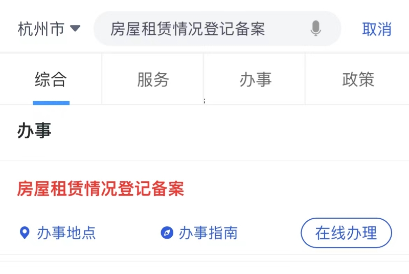 2.手機APP–“浙里辦”,搜“房屋租賃情況登記備案”欄目。