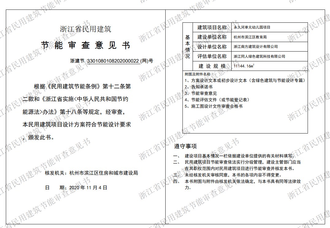 永久河單元幼兒園節(jié)能審查意見書