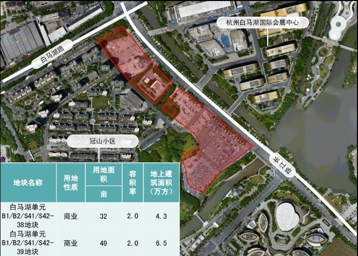 白馬湖單元會(huì)展中心西兩宗地塊均位于白馬湖片區(qū)環(huán)湖科創(chuàng)休閑組團(tuán),周邊道路通達(dá),地塊臨近居住片區(qū),東側(cè)緊鄰白馬湖會(huì)展中心、建國(guó)飯店、白馬湖公園等片區(qū)地標(biāo),區(qū)域內(nèi)匯集杭二中白馬湖學(xué)校、國(guó)際學(xué)校等名校資源及華數(shù)、網(wǎng)易、暢唐等高新產(chǎn)業(yè),疊加優(yōu)質(zhì)生態(tài)本底優(yōu)勢(shì),該地塊適宜打造精品商業(yè)綜合體,為周邊高新產(chǎn)業(yè)及居住人群提供商服配套。