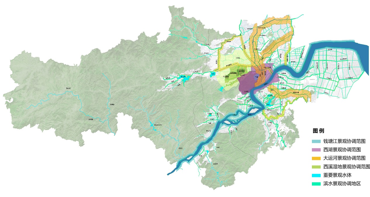 二是城融山水,構建市域風貌骨架和市區風貌格局。注重傳承城市與山水、文化融合的整體意象和空間脈絡,彰顯山水城市意象,依托“江、湖、山、林、渚、灘、田”等本底資源,構建“一水兩脈,五景融城”的市域整體風貌骨架和“五湖四水一江潮,兩脈青山半入城,三軸匯心領錢塘,十景秀色映城郭”的市區風貌格局。