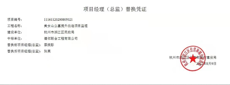 美女山公墓提升改造計(jì)劃項(xiàng)目經(jīng)理(總監(jiān))替換憑證