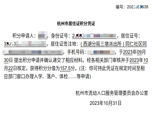 持有杭州市區有效《浙江省居住證》,11月1日前總積分達到100分及以上,年滿18周歲,具有完全民事行為能力的非本市市區戶籍人員。