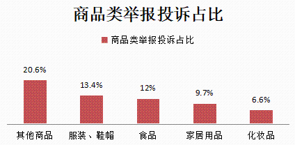 商品類舉報投訴60247件,其中其他商品12399件、服裝、鞋帽類8044件、食品類7204件、家居用品5835件、化妝品3986件,合計占比62.3%。