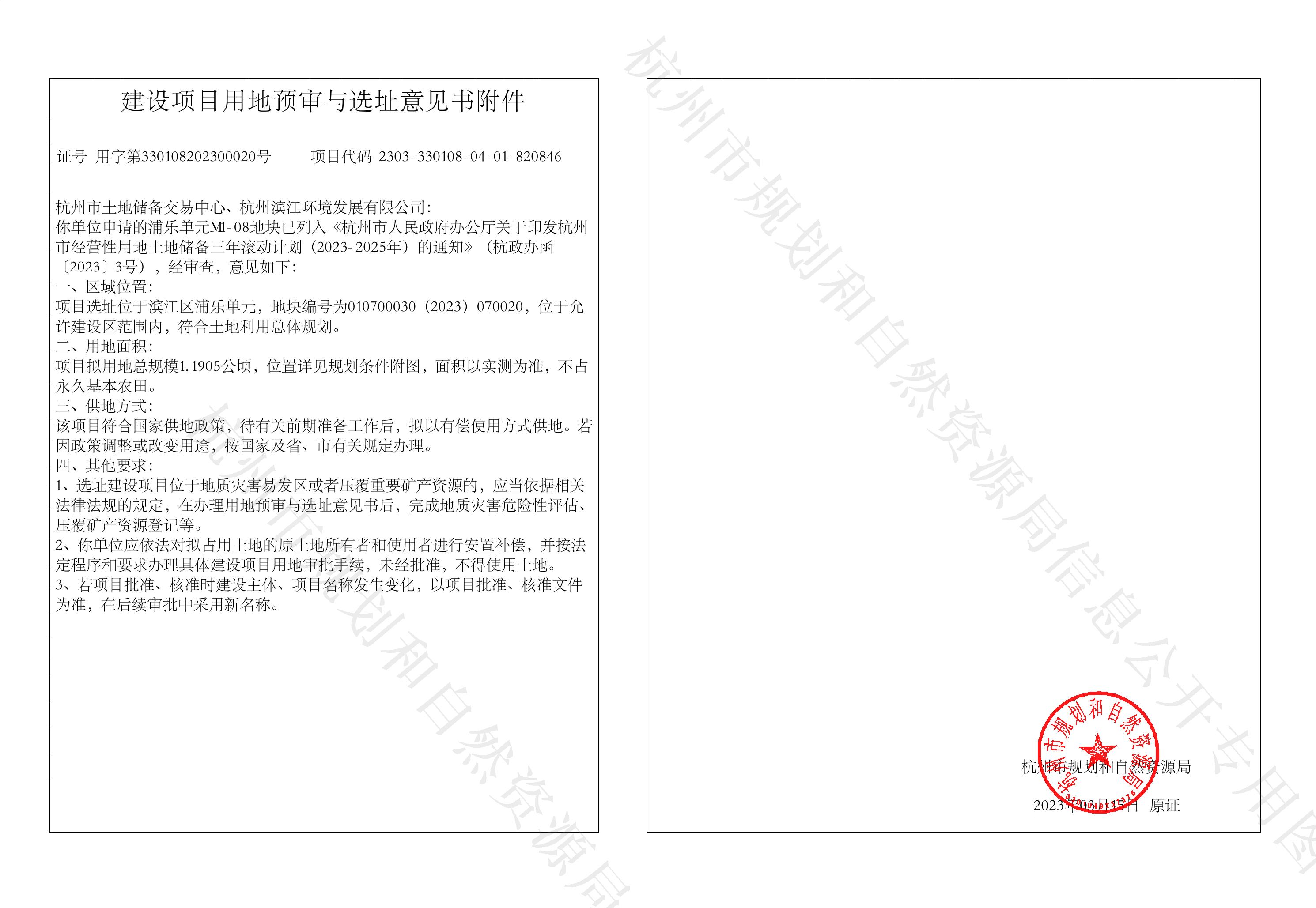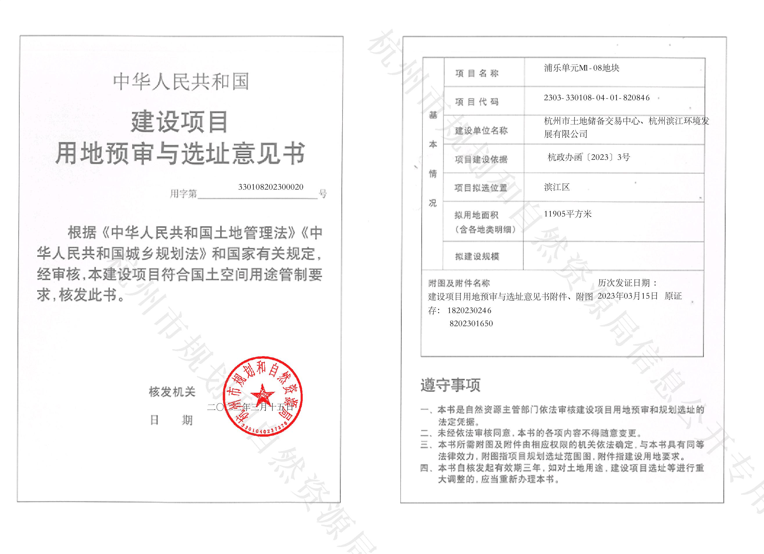 建設項目選址意見書和用地預審-浦樂單元M1-08地塊