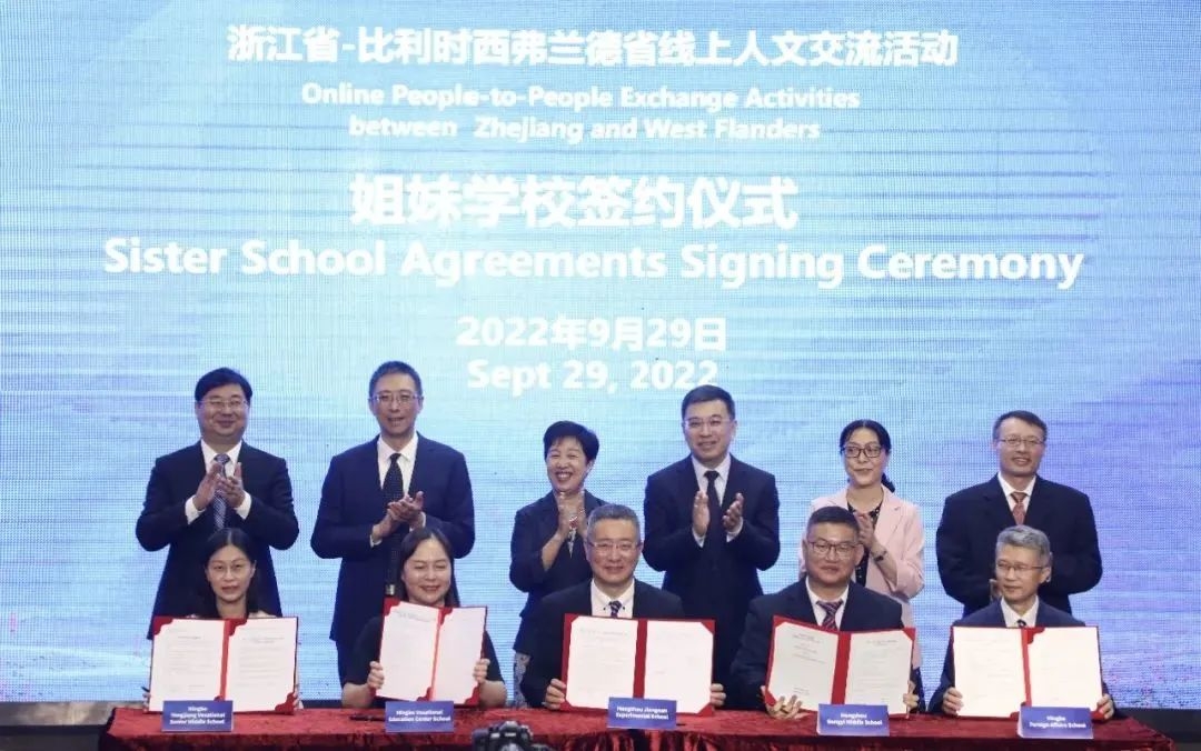 2022年9月29日,浙江省與比利時西弗蘭德省以網絡視頻連線方式舉行人文交流活動在江南實驗學校舉行,也就是在這次活動上江南實驗學校和西弗蘭德省巴納姆學校簽訂了姐妹學校協議,在兩國孩子們共同見證下步入了美好友誼交流新起點。