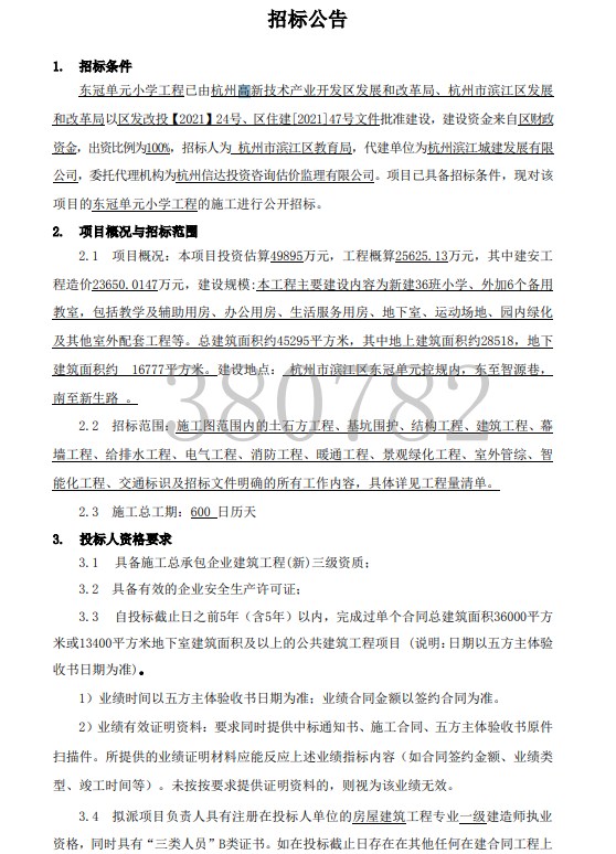 陽光政務 > 專題專欄 > 專題專欄 > 重大項目,全生命周期 > 2023年 > 東冠單元小學 > 招標投標信息 >