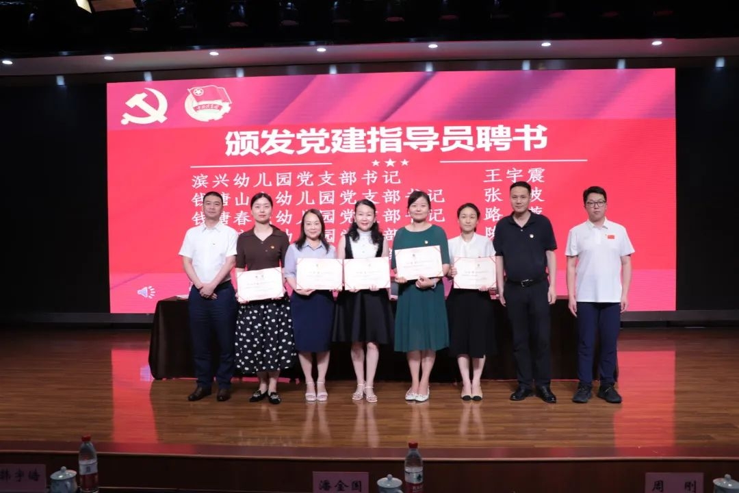 會議舉行了黨建指導員聘任儀式,區內5名公辦幼兒園黨支部書記擔任民辦幼兒園的黨建指導員。通過制定實施辦法,委派黨建指導員和結對工作的形式,賦能民辦幼兒園基層黨團組織建設,實現教育系統優質資源的共享和合作。