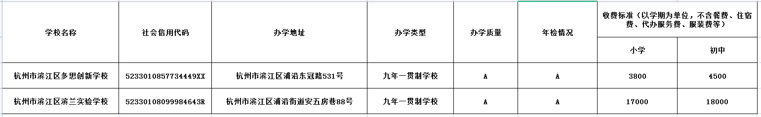 【民辦收費】濱江區民辦學校的辦學情況和收費信息