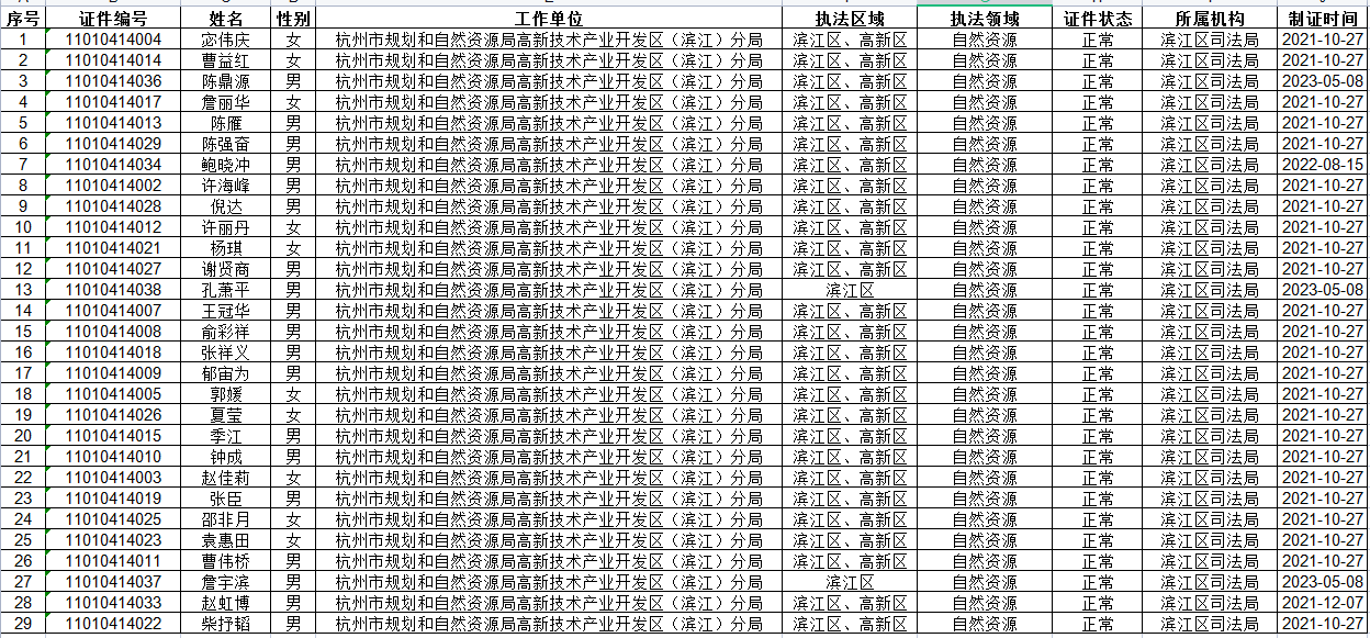 杭州市規劃和自然資源局濱江分局執法人員統計表