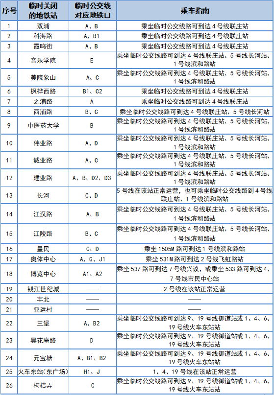 ◎1號線江陵路站、4號線中醫藥大學站、7號線奧體中心站、9號線三堡站暫停運營;