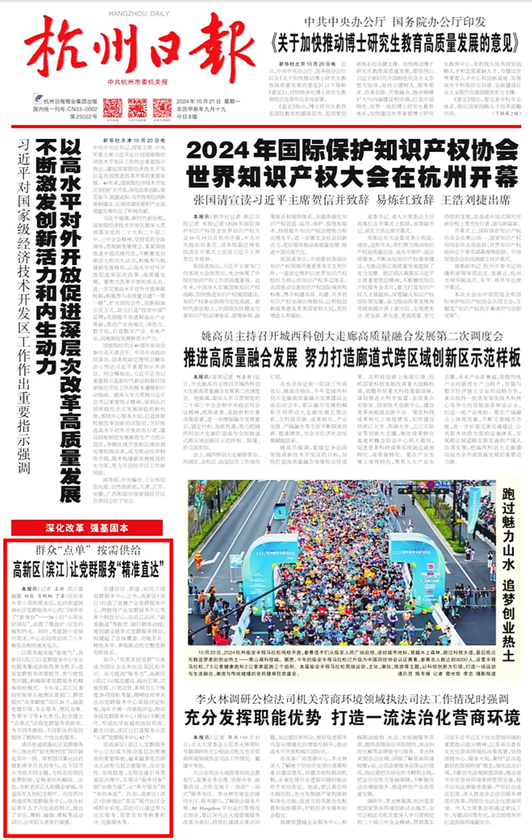 在建好區、街道、社區三級黨群服務中心之外,高新區(濱江)打造了直播行業黨群服務中心、物聯網產業黨群服務中心等多個特色中心,在沿江沿河、“最美跑道”等跑團、騎行群體動線,規劃建設鏈帶式黨群服務驛站,構建起了全域覆蓋、功能互補、特色各異、多級聯動的完整黨群矩陣體系。
