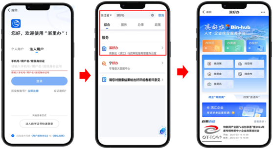 2、手機端則更方便,使用法人賬號登錄浙里辦APP后,搜索“濱好辦”,點擊“濱好辦”即可進入平臺。