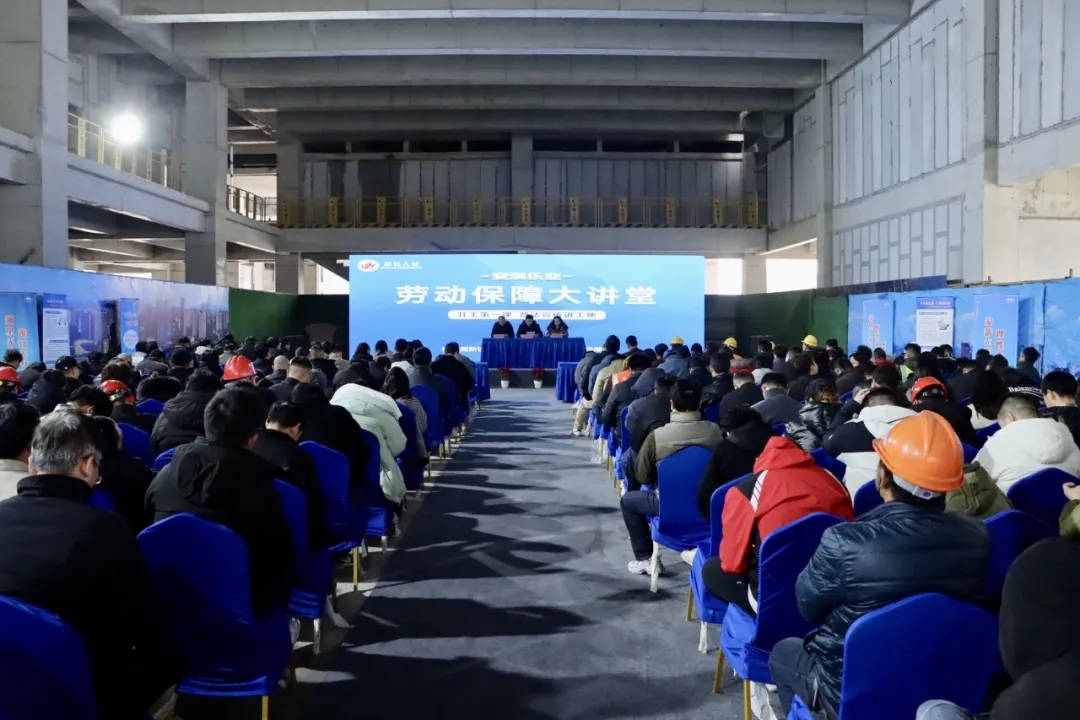3月6日下午,區人力社保局聯合區住建局、區總工會赴網易杭州軟件基地三期項目開展“安濱樂業·勞動保障大講堂”——開工第一課·普法宣傳進工地活動。區人力社保局、區住建局、區總工會相關負責人,在建工程施工單位負責人、勞資專管員等300余人參加。