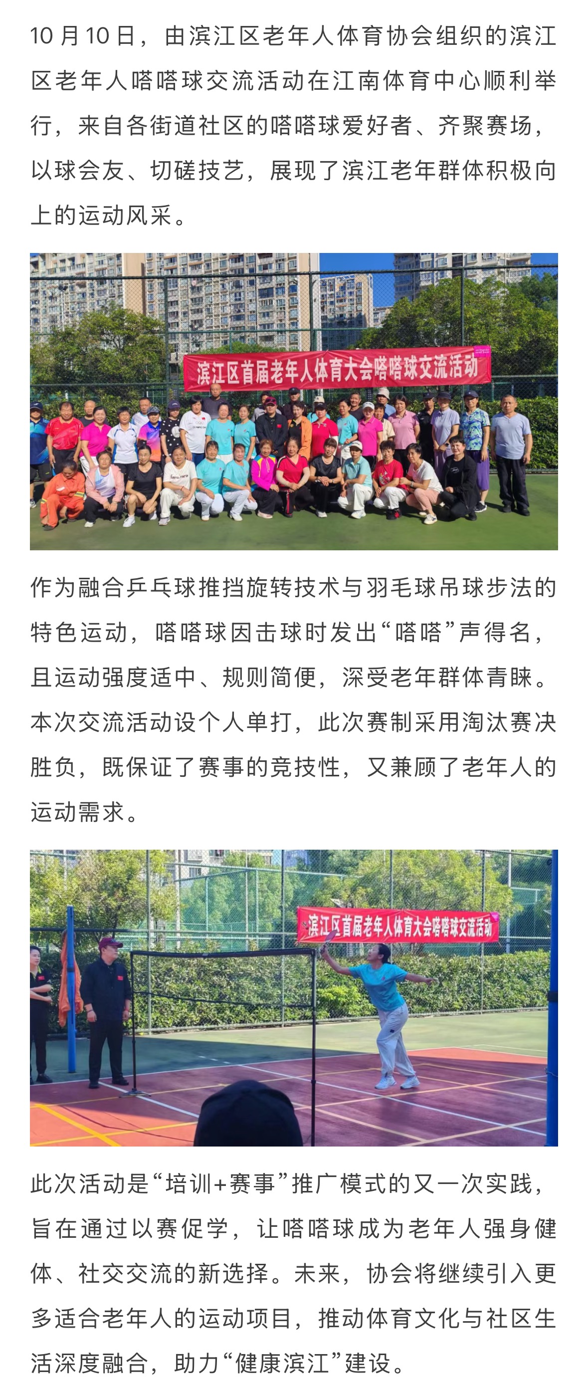 濱江區老年人嗒嗒球交流活動順利舉行