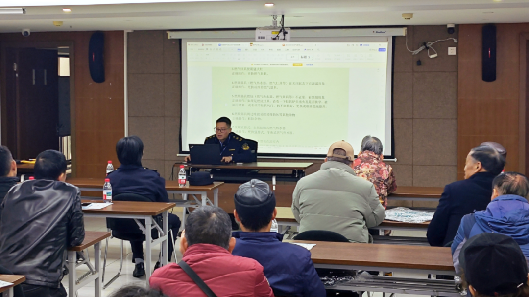 活動當天,居民代表、餐飲商戶負責人及物業工作人員早早到場。現場首先播放了燃氣安全警示教育片,結合真實案例與動畫演示,生動直觀地呈現了燃氣使用中的常見隱患與應對方法。市綜合行政執法隊隊員圍繞燃氣器具正確使用、日常注意事項及泄漏應急處置等內容,進行了深入淺出的講解,將專業知識轉化為居民聽得懂、記得住的“安全干貨”。