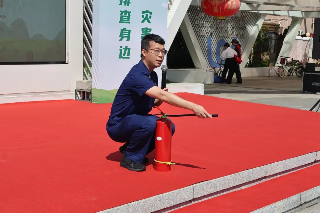 隨后,消防隊員現場演示滅火器使用技巧,講解家庭火災預防要點,并通過模擬火情處置,生動展示應急技能。醫護人員緊隨其后,開展心肺復蘇、急救包扎等實操教學,邀請居民參與互動,掌握“黃金救援”關鍵步驟。活動還穿插兩輪防災知識有獎問答,涵蓋地震避險、火災逃生等內容,居民踴躍參與,現場氣氛熱烈。