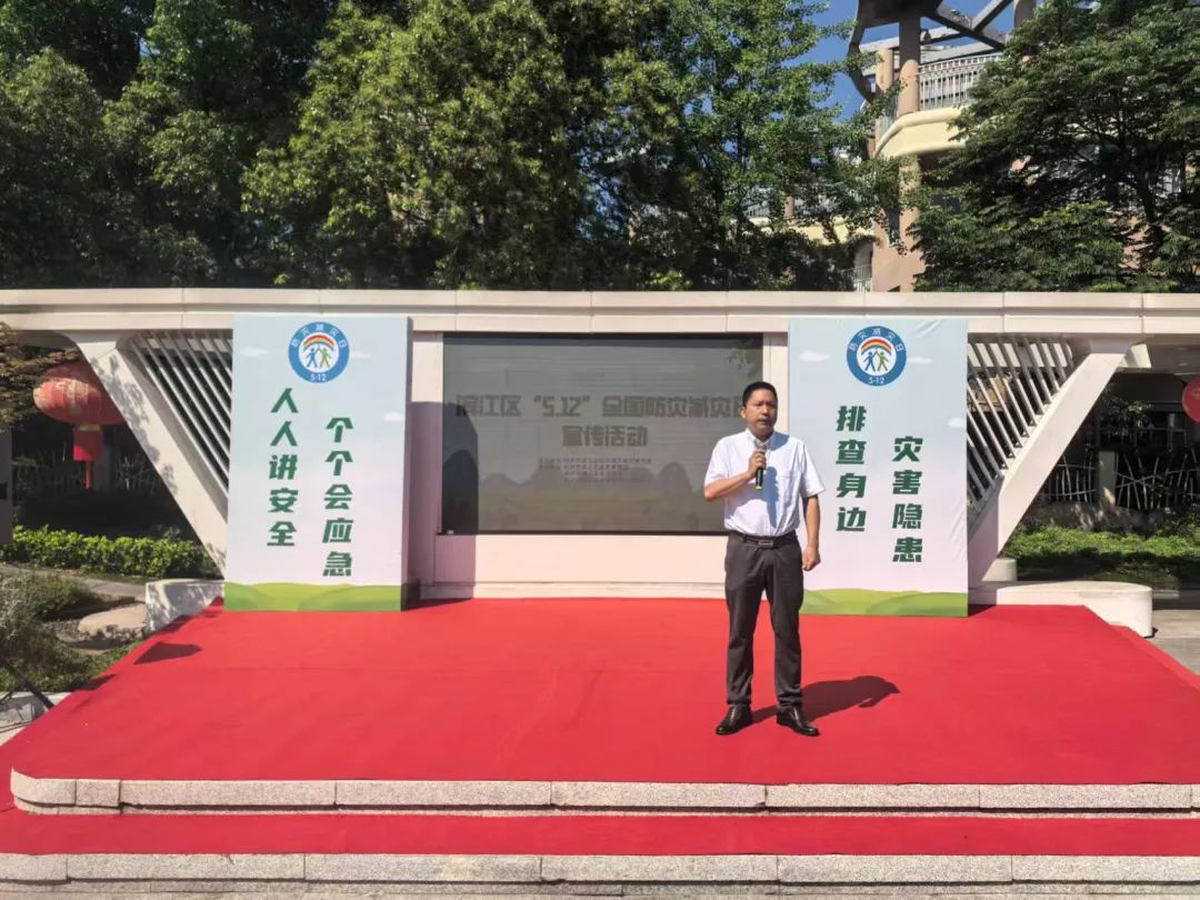 活動伊始,通過播放防災減災視頻,向居民們生動展示了各類災害的應對方法和自救互救知識,為現場營造了濃厚的宣傳氛圍。區防減救災委員會辦公室副主任、區應急管理局黨委委員、副局長蔡貴青發表致辭,強調防災減災是保障人民生命財產安全的重要基礎,需以“時時放心不下”的責任感,推動防災知識進社區、進家庭,全面提升公眾自救互救能力。