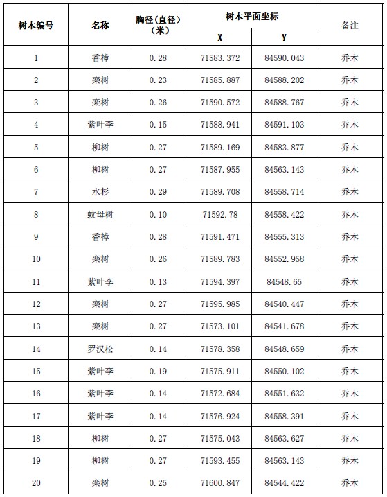 虹湖路橋梁工程苗木測量成果表