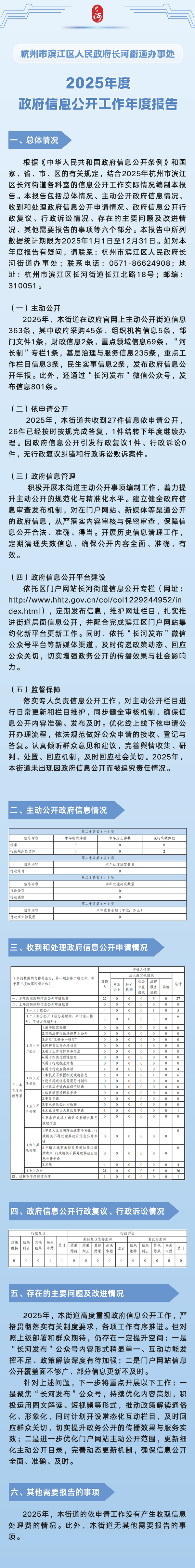 圖解 杭州市濱江區(qū)人民政府長河街道辦事處2025年度政府信息公開工作年度報(bào)告