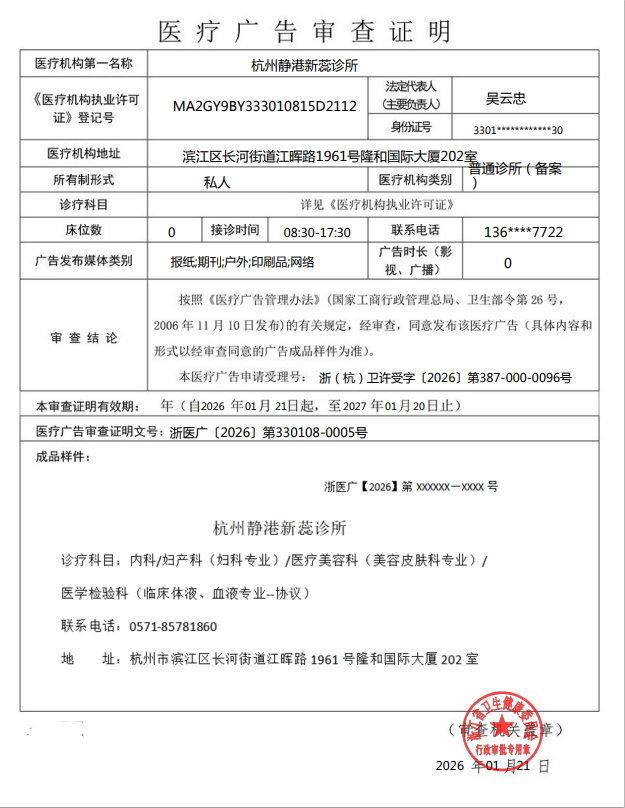 醫(yī)療廣告公示——杭州靜港新蕊診所